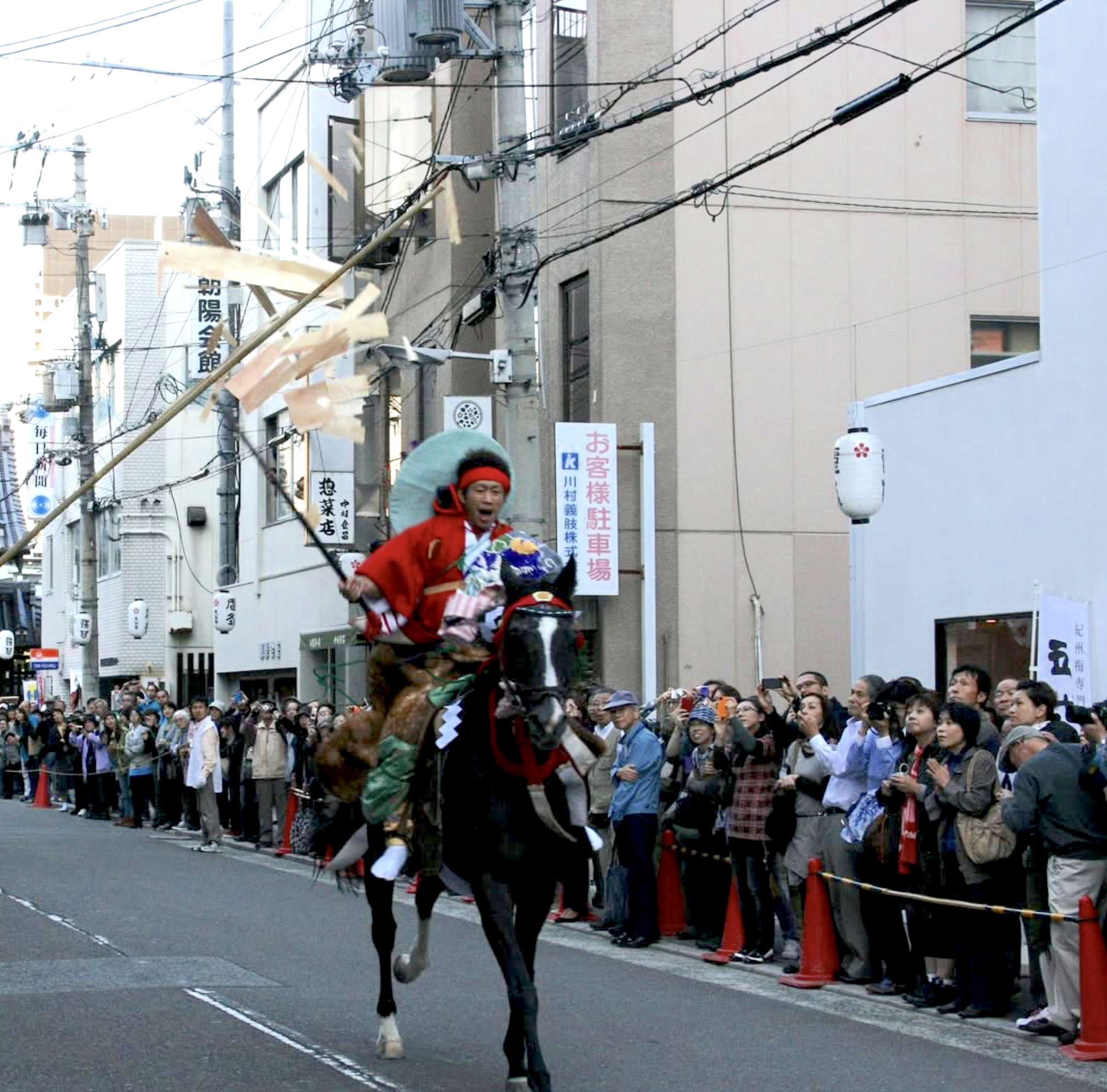 Costume: Riders in elegant Heian-period apparel and traditional gear