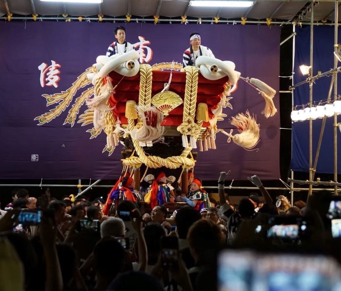 On October 5, the celebration reaches a family-friendly high point with the Hōjō-sai ritual at 11:00 AM. In this ceremony, children release live fish into the shrine pond, symbolizing the gift of life, good fortune, and the renewal of nature’s blessings. The day also sees the departure of the floats from the shrine, a dramatic reversal of the previous day’s arrivals, with each team making one final, spirited push before guiding their floats back through their neighborhoods.