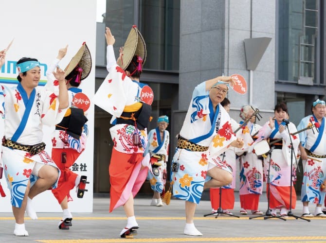 13:00–15:00: Street/cheer dance, university collaboration “Let’s all dance,” inline-skate showcase, “Nanshōran” yosakoi, Youth Theatre Japan, city fire band & baton school.