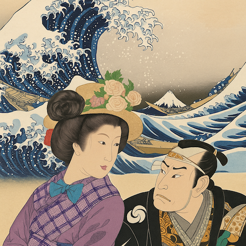 The exhibition highlights works by many of the masters: Hiroshige’s poetic landscapes, Hokusai’s dynamic compositions, Kunisada’s charismatic kabuki portraits, Kuniyoshi’s bold warrior prints, and early Meiji works by Yoshitoshi and Chikanobu that reveal a nation in transition. Visitors follow a clear chronological flow that traces how woodblock prints evolved alongside rapid social change — from samurai-era street scenes to the arrival of railways, Western clothing, and modern city life.